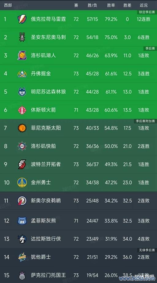 北京时间3月25日,NBA常规赛随着掘金125-123险胜太阳,今日的所有比赛全部结束,我们看看西部的最新积分榜变动!